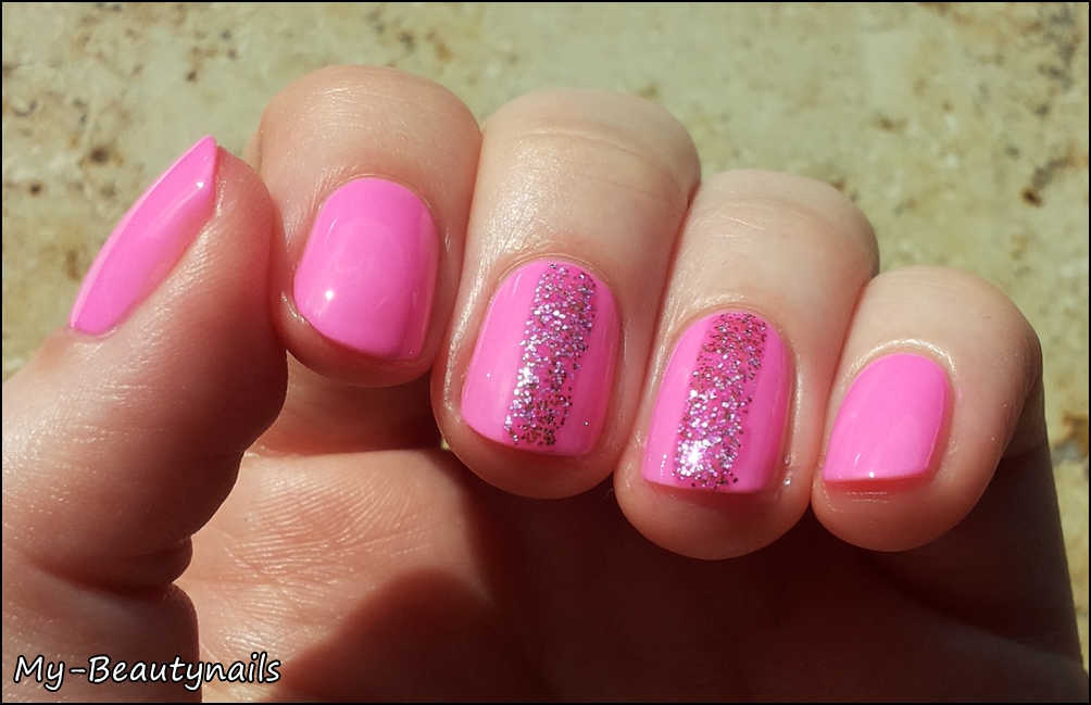 Hier seht ihr zwei Schichten 253 aus der Catherine mit Natascha Ochsenknecht Collection, ein strahlendes Knallerpink. Der Lack lässt sich super lackieren und strahlt auch ohne Weiß drunter auf den Nägeln schon toll.